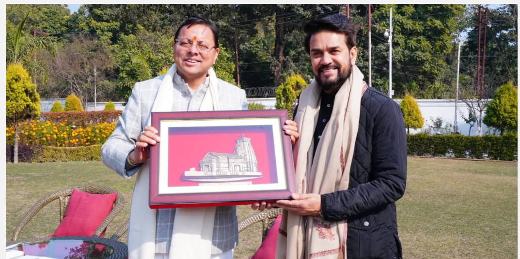 देहरादून। मुख्यमंत्री पुष्कर सिंह धामी से सोमवार को मुख्यमंत्री आवास में सांसद एवं पूर्व केंद्रीय मंत्री अनुराग सिंह ठाकुर ने शिष्टाचार भेंट की।